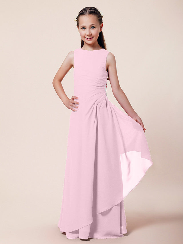 A-Line Chiffon Bridesmaid Dress with Beading and Side Draping for Weddings